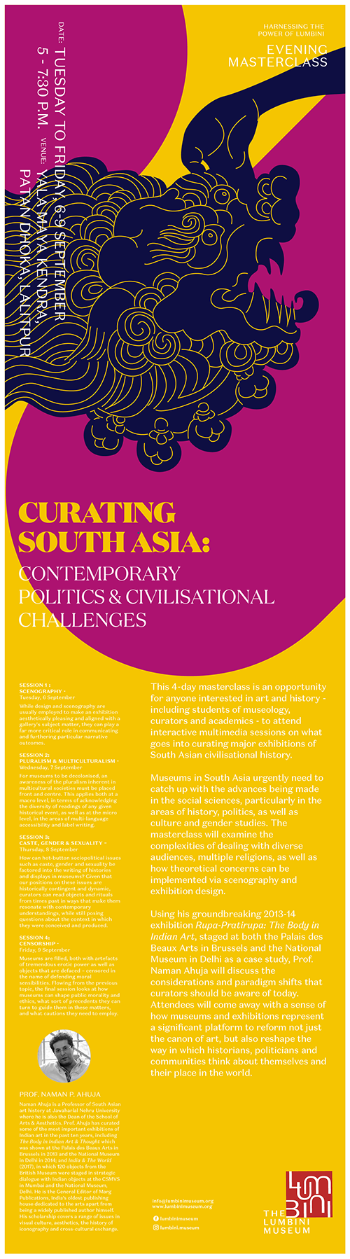 In “Curating South Asia: Contemporary Politics and Civilisational Challenges,” a set of evening masterclasses accompanying his public lecture on Buddhist visual culture and Asian geopolitics, Prof. Naman Ahuja delves into how museums can be tremendously important brokers of dialogues about decoloniality and identity, through the exhibitions that they stage.