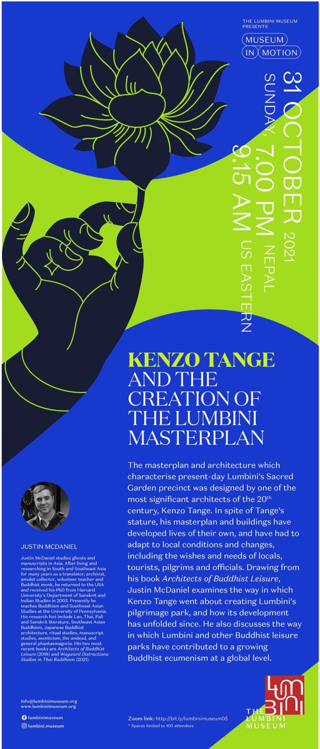 We’re back with Museum in Motion after a brief hiatus. Our fifth instalment features Justin McDaniel, who teaches Buddhism and Southeast Asian Studies at the University of Pennsylvania. Drawing from his book Architects of Buddhist Leisure, Justin McDaniel examines the way in which Kenzo Tange went about creating Lumbini’s pilgrimage park, and how his masterplan has had to adapt to local conditions and changes. He also discusses the way in which Lumbini and other Buddhist leisure parks have contributed to a growing Buddhist ecumenism at a global level.